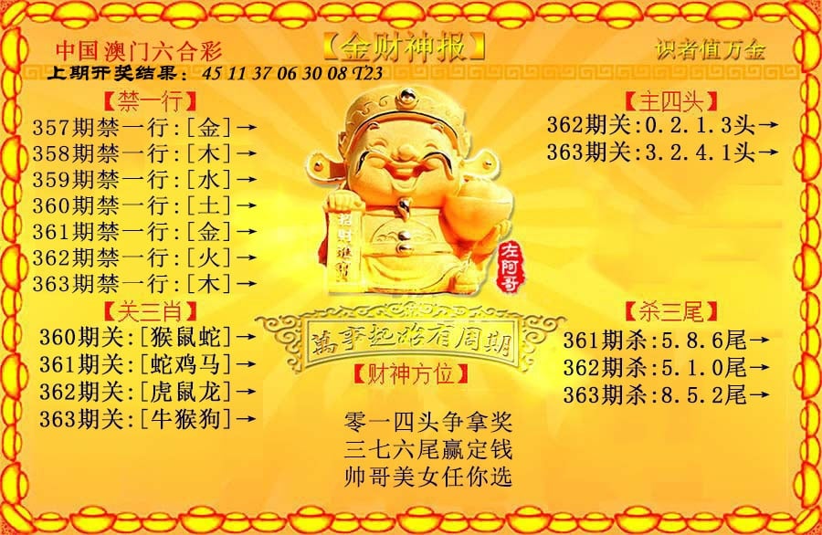 358期:【旺财好运来】📓杀一尾📓 不可能再连庄 必杀